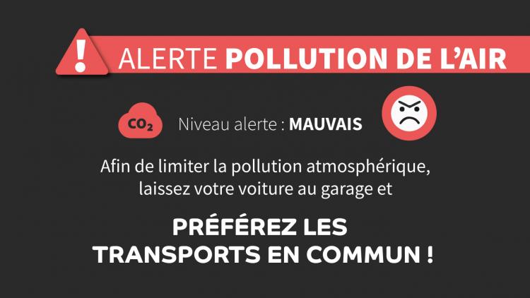 Vendredi 20 mars 2026 : alerte pollution de l'air niveau : DÉGRADÉ En utilisant le bus vous contribuez à limiter la pollution atmosphérique, merci à vous ! + d'infos sur : Qualité de l'air à Saint-Brieuc - Air Breizh